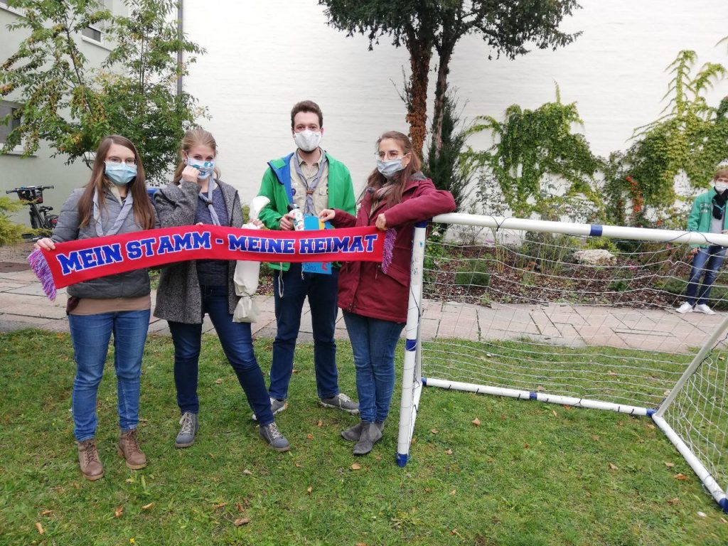 Der Einsatz „Stammesversammlung“ ging also los, alle wurden begrüßt, der Ablauf erklärt und wir starteten mit der ersten wichtigen Einsatzphase: der Beschlussfähigkeit. Diese Phase meisterten wir mit Bravour und jede*r Delegierte*r erhielt eine Coronamaske, welche an einem upgecycelten Erdnagel klebte, als Abstimmungswerkzeug. Anschließend folgte Phase 2: die Berichte. Hier berichtete jede Gruppe, sowie auch die Aks und der Stavo aus ihrem letzten Jahr. Obwohl Corona viele Pläne durchkreuzt hatte, fand doch die ein oder andere Aktion statt, nur anders eben, auch konnte wohl die Scribble.io-Fähigkeit des gesamten Stammes signifikant gesteigert werden – wie erfreulich. Außerdem gab es ein Grußwort unseres Pfarrers, sowie noch einmal eine kleine Geburtstagsansprache, da unser 40. Jubiläum dieses Jahr leider verschoben werden musste. Phase 3 startete ebenfalls noch vor dem Mittagessen und so wurden drei Kassenprüfer*innen sowie Frederik Wohlleben als Stammesvorsitzender für eine zweite Amtszeit gewählt. Herzlichen Glückwunsch an dieser Stelle, wir freuen uns sehr! Anschließend rückte unser Sonder-Eintopf-Kommando aus und versorgt uns mit einer leckeren, heißen Mahlzeit. Nun folgte Teil zwei der dritten Phase und Amelie Bayer wurde als Kuratin wiedergewählt. Der Stammesvorstand besteht also weiterhin aus Franziska Schwendner, Frederik Wohlleben und Amelie Bayer.