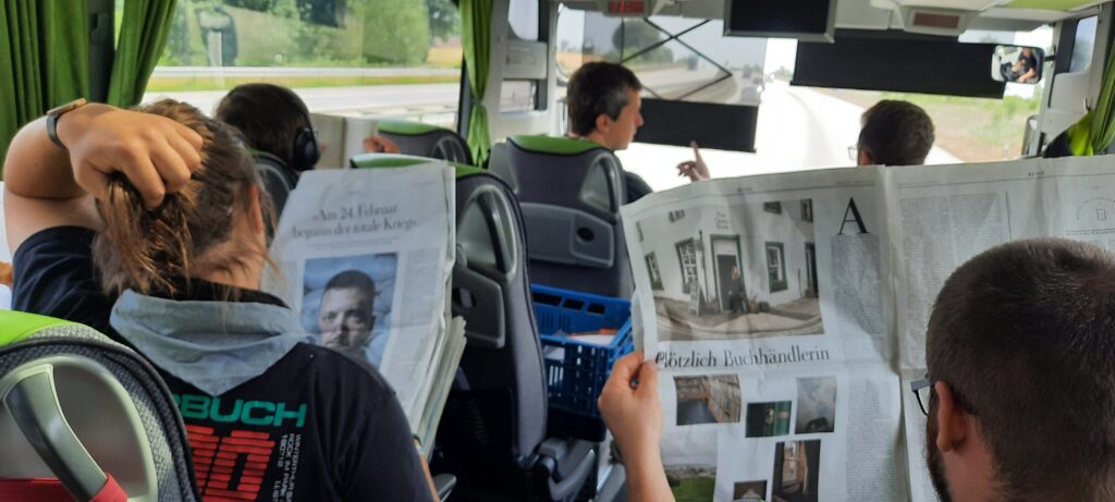 unsere Reise begann mit einer elfstündigen Busfahrt nach Blonie in Polen. Auf der Fahrt wurde geschlafen, gelesen und Karten gespielt. Wie immer fesselte die aktuelle BRAVO sponsored by Franzi alle Teilnehmer*innen.